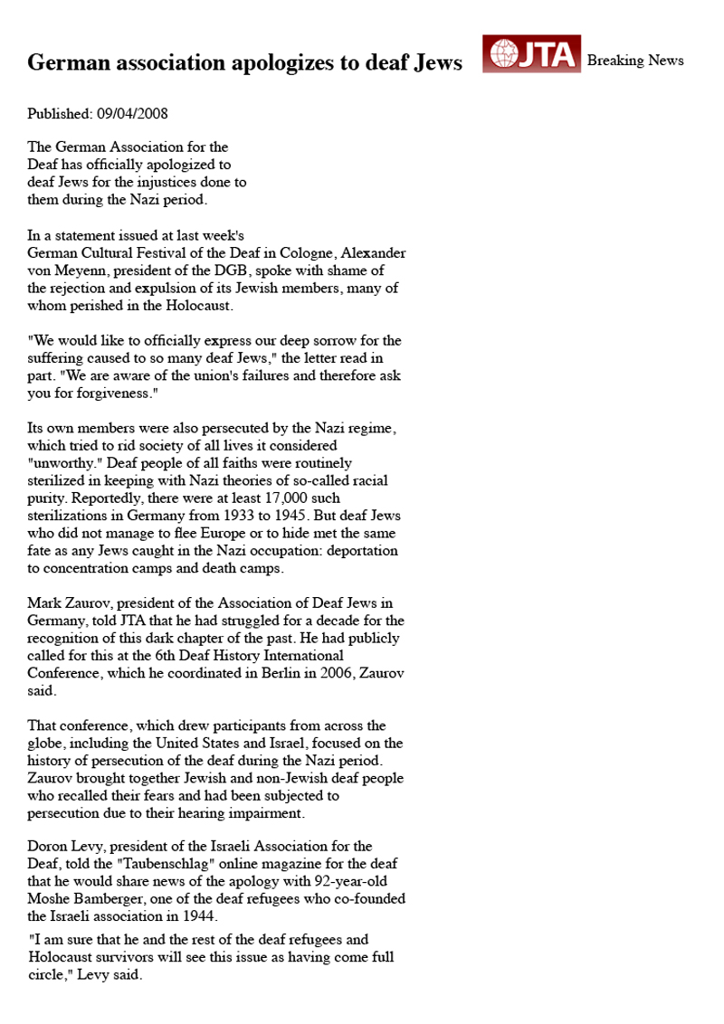 Am 10. März 2011 um 18 Uhr findet im Gehörlosenzentrum Berlin eine Podiumsdiskussion zum Thema:"T4" für behinderte und psychisch Kranke oder ein eigenes Mahnmal für taube Juden und Gedenkstätte für taube Menschen? statt.